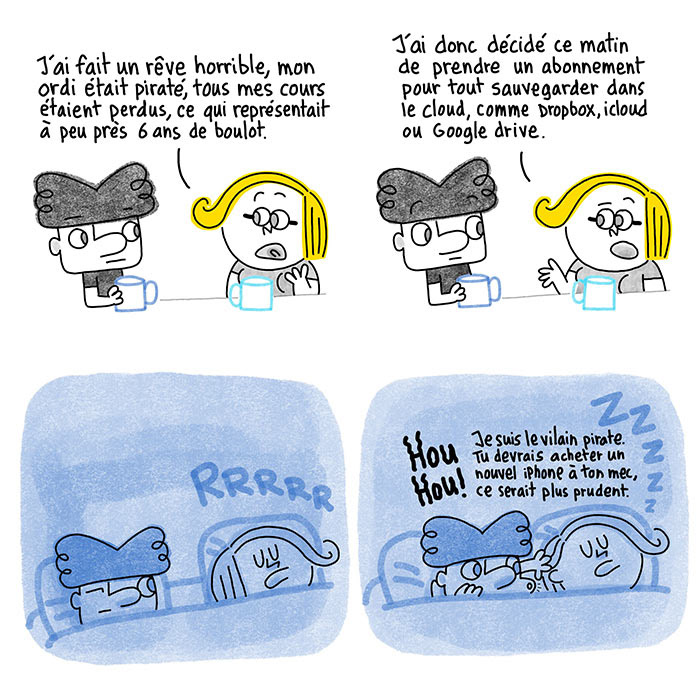 Les planches postées ci-dessous sont pour la plupart centrées sur ce qui se veut être le reflet d'une vie de couple, avec je l'espère mon originalité et mon humour.